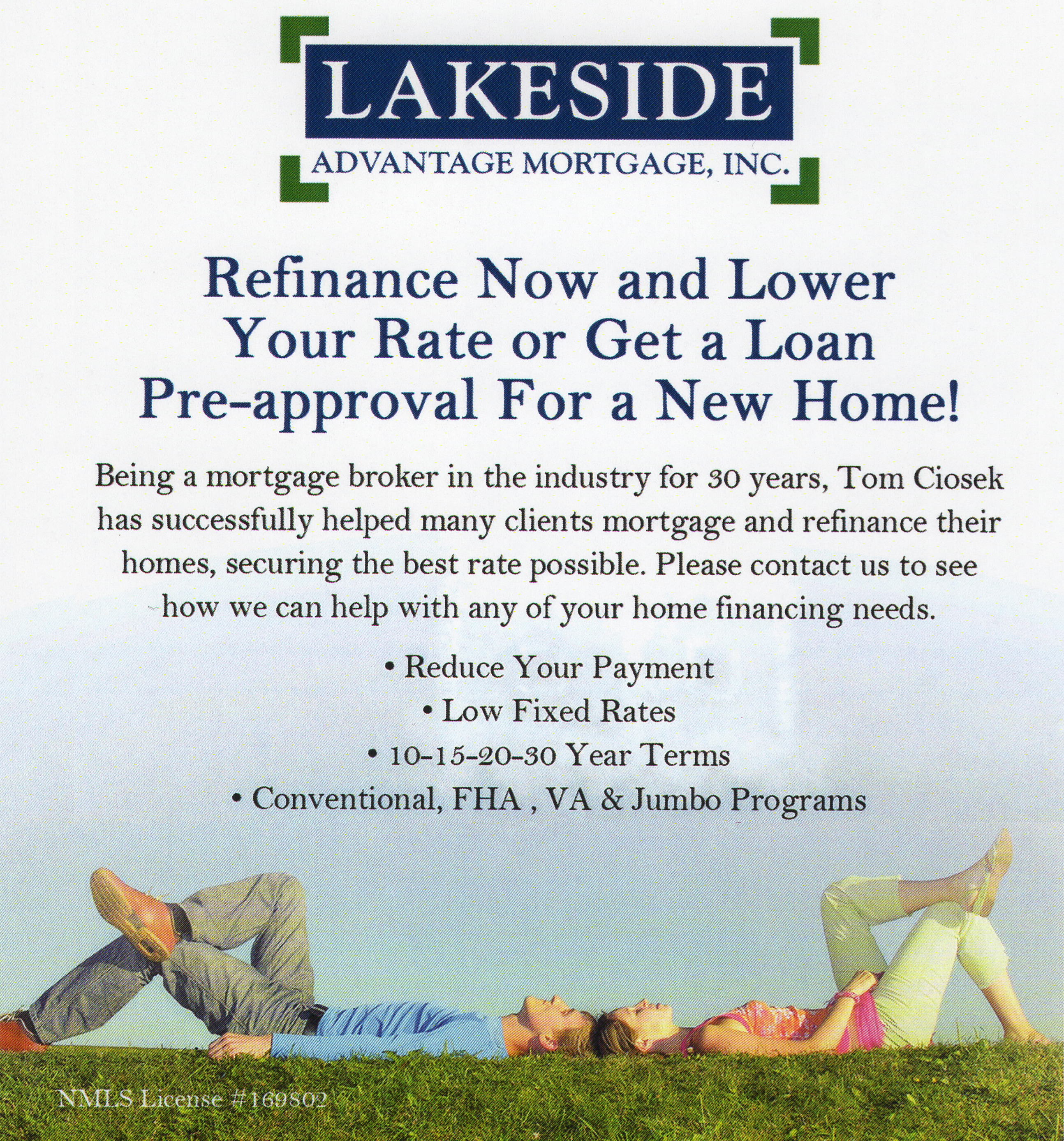 Lakeside Advantage Mortgage is focused on helping clients with their home financing needs throughout the state of Michigan. We’re committed to educating the client on the best loan programs available in an ever changing market place. Whether you are looking for a new home, refinancing your existing home or changing the loan term, we can help with your needs.